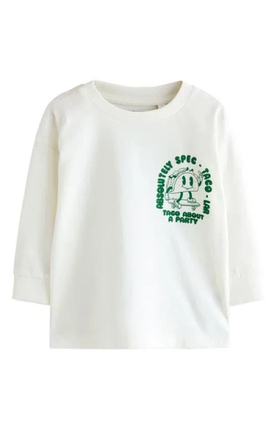Kids' Taco Party Long Sleeve Cotton Graphic T-shirt In White