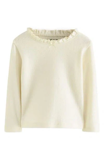 Kids' Frill Neck Cotton Pointelle Knit Top In Yellow
