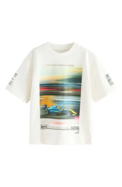 Kids' Oversize La Graphic T-shirt & Stripe Drawstring Shorts Set In Neutral