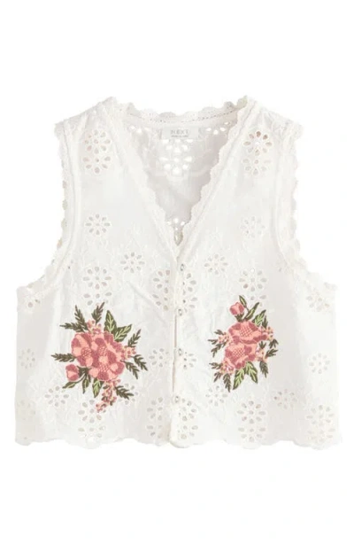 Kids' Floral Embroidered Eyelet Cotton Button-up Vest