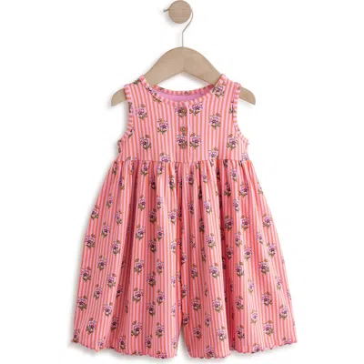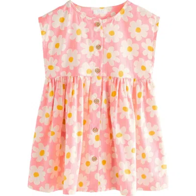 Babies' Kids' Floral Print Cotton Button Front Dress In Pink
