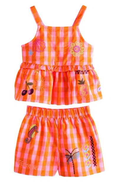 Kids' Embroidered Gingham Top & Shorts Set In Pink