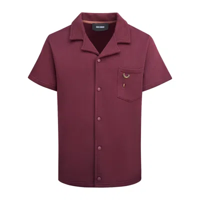 Men's Red Button Down Short Sleeve Plum Sweatshirt In Burgundy