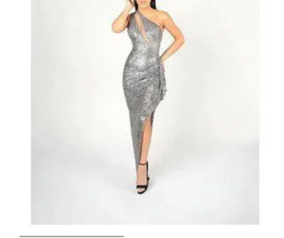 One Shoulder Gown In Grey In Silver