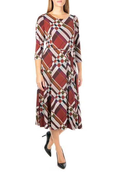 Crewneck Three-quarter Sleeve Midi Dress In Navy Multi Combo