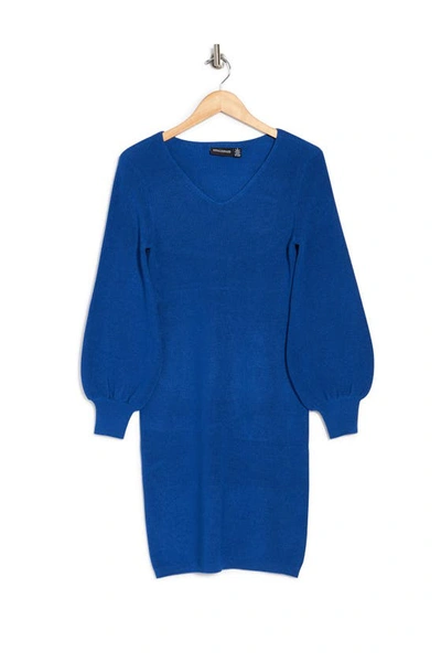 V-neck Balloon Sleeve Sweater Dress In Classic Blue