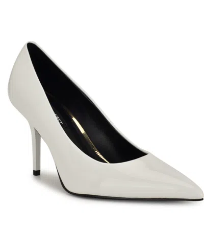 Women's Rills Bridal Pointy Toe Dress Slingback Pumps In White Satin