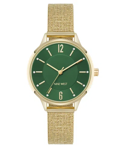 Women's Quartz Capital Green And Gold-tone Stainless Steel Mesh Watch, 34mm