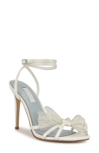 Women's Kelsie Ankle Wrap Sculpted Heel Sandals In White Satin