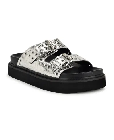 Women's Eleny Double Band Flatform Sandals In Silver Croc