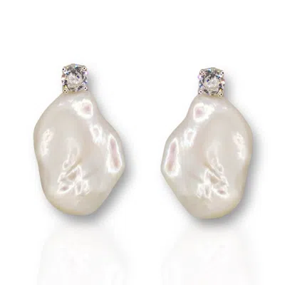 Women's White / Silver Gleaming Baroque Pearl Silver Earrings