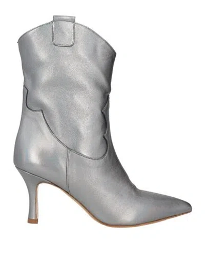 Woman Ankle Boots Grey Size 7 Soft Leather In Silver