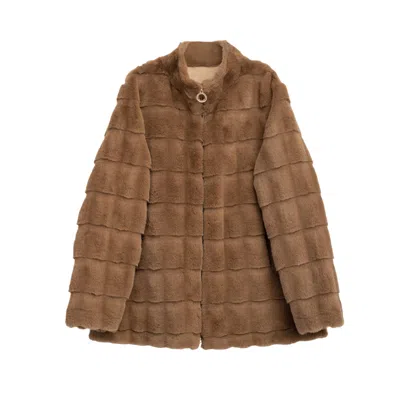 Women's Brown Faux Fur Jacket With Discreet Center Zip In Neutral