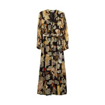 Women's Blue Long Sleeved Floral Print Maxi Dress In Multi
