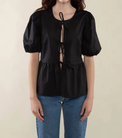 Linen Short Sleeve Tie Front Collared Blouse In Olive In Green