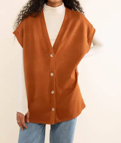 Theo Oversized Knit Vest In Camel In Brown