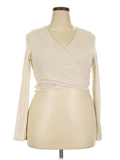 Pre-owned Long Sleeve Top Ivory Plunge Neckline Tops In White