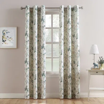 Alethea Floral Print Crushed Voile Rod Pocket Light-filtering Single Curtain Panel In White