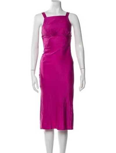 Pre-owned Square Neckline Midi Length Dress In Pink