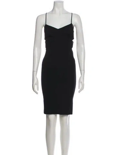 Pre-owned V-neck Knee-length Dress In Black