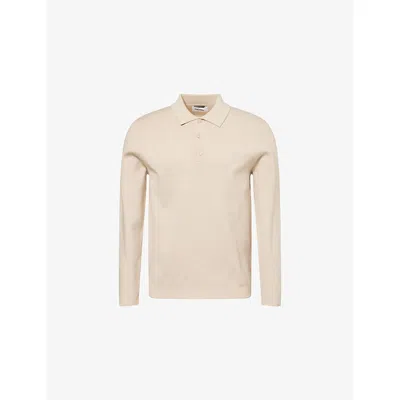 Mens Stone Rylan Long-sleeves Knitted Polo Shirt In Neutral