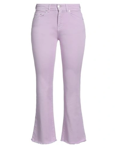 Woman Pants Lilac Size 24 Cotton, Elastane In Purple