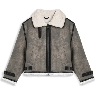 Shawna Faux Shearling Lined Faux Leather Jacket In Gray