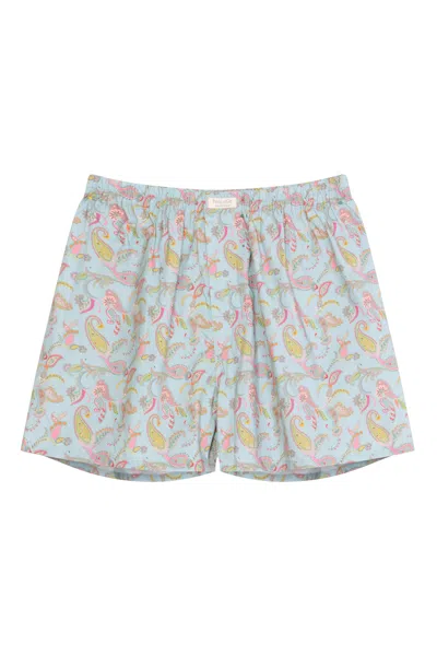 Men's Paisley Print Boxers Boxer Short Cotton Dusty Blue / Blue In Green