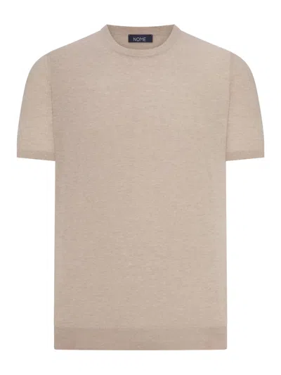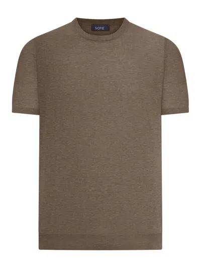 Short-sleeved Cotton Knitted T-shirt In Brown