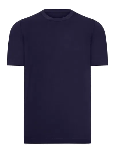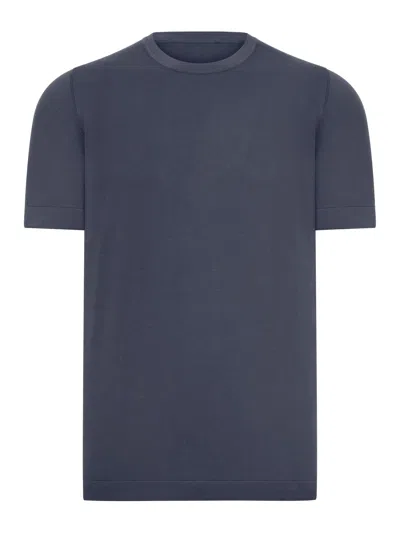 Short-sleeved Cotton Knitted T-shirt In Blue