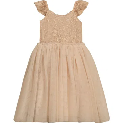 Babies' Camilla Lace Flutter Sleeve Dress In Brown