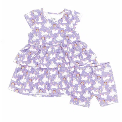 Kids Organic Layered Dress With Matching Biker Shorts In Unicorns