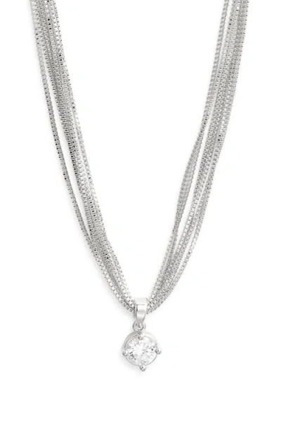 Solitaire Cubic Zirconia Pendant Necklace In Metallic