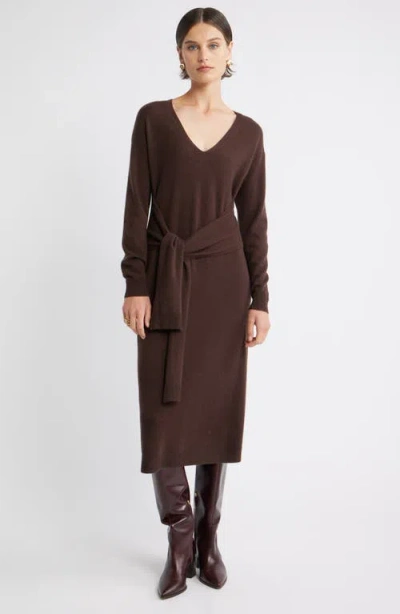 Long Sleeve Wool & Cashmere Blend Sweater Dress In Brown