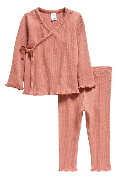 Babies' Waffle Knit Cotton Top & Pants Set In Pink Brick