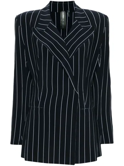 Pinstripe Double-breasted Blazer In Blue