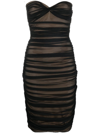 Diana Strapless Ruched Stretch Jersey Midi Dress In Black