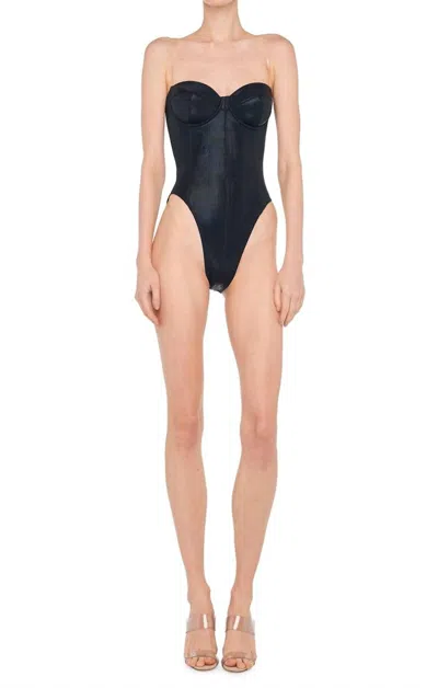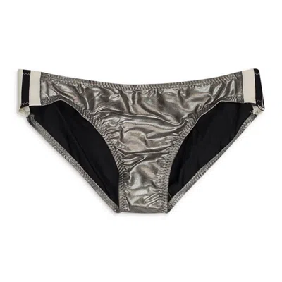 Side Stripe Scoop Gunmetal Bikinis In Gray