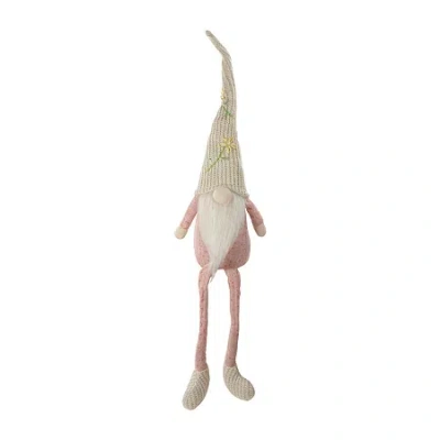 Sitting Spring With A Knitted Hat Gnome In Pink
