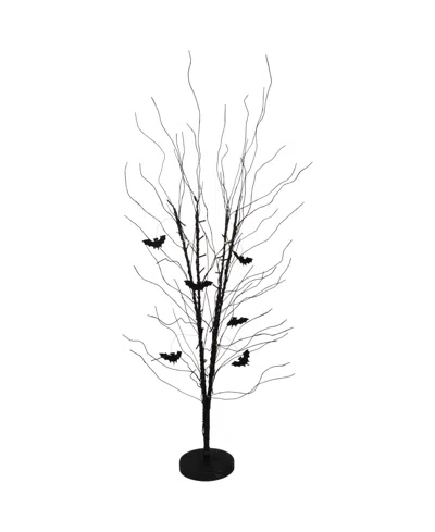 50" Led Lighted Black Halloween Branch Tree With Bats Warm White Lights