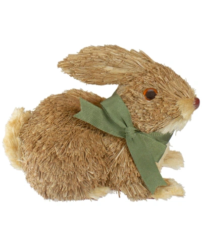 Plush Rabbit With Flower Wreath Easter Figurine In Brown