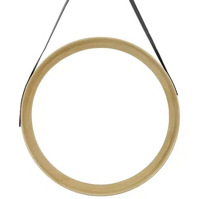 20" Wooden Finish With Black Hanging Strap Round Wall Mirror In Gold