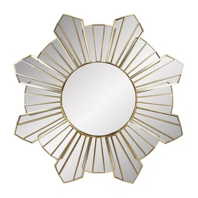 25" Shiny Gold Sunburst Wave Glass Round Wall Mirror In Gray