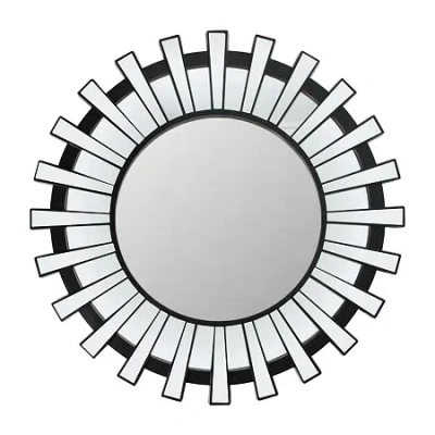 25.5" Black Sunburst Mounted Round Wall Mirror In Multi