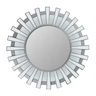 25.5" Matte Silver Sunburst Wall Mirror In Gray