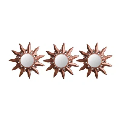 9.5" Mayan Sunburst Matte Copper Mini Rectangular Wall Mirror In Brown
