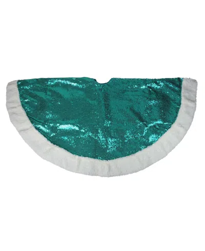 47" Green Paillette Sequins Round Christmas Tree Skirt With Sherpa Border