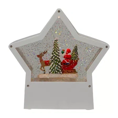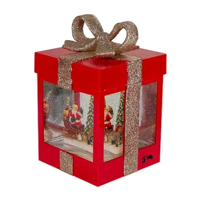 7in Red Gift Box With Reindeer Santa Christmas Snow Globe In Multi