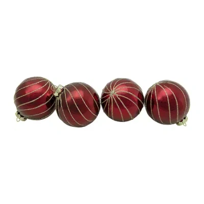 Red And Gold Striped Ball 4-pc. Christmas Ornament