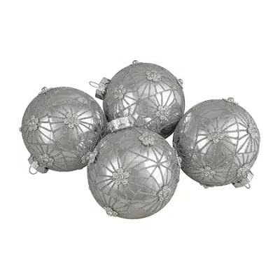 Glass 2-finish Ball 4-pc. Christmas Ornament In Silver